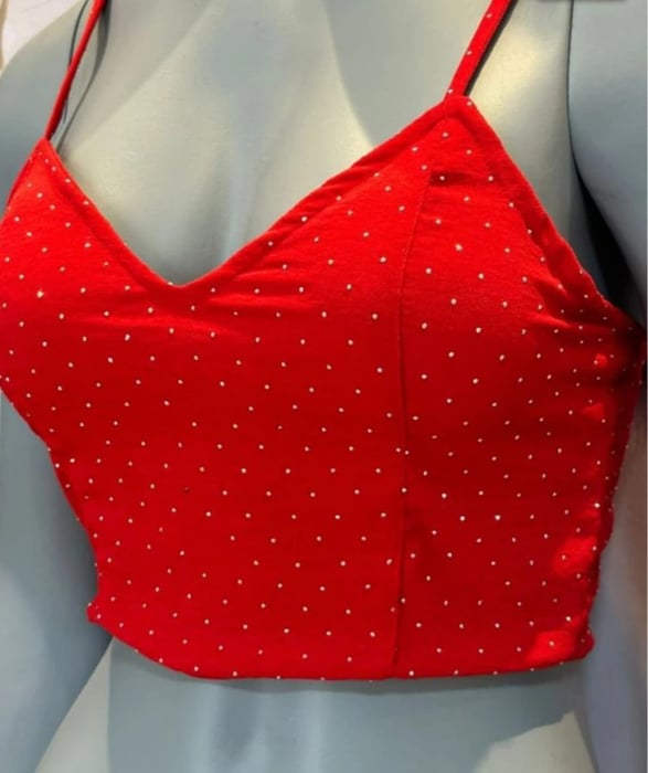 Cropped strassFechamento em ziper nas costasPossui bojo